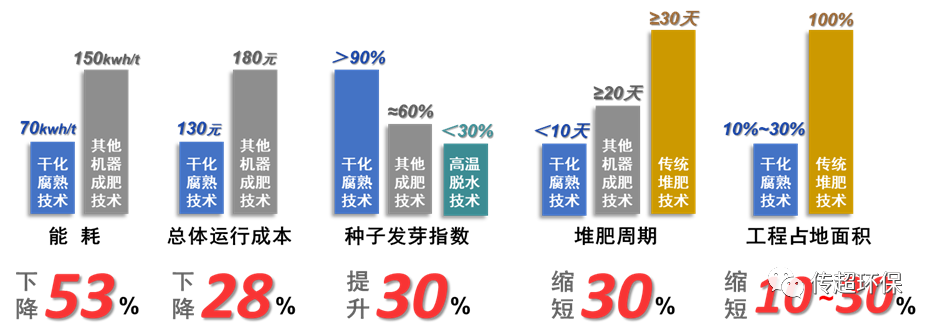 據悉,浙江傳超環保科技有限公司主要承擔易腐垃圾生物強化機器成肥技術與設備和垃圾滲濾液高效脫氮除碳技術與設備的研發和工程示范工作。其中易腐垃圾生物強化機器成肥技術與設備,高溫發酵采用層遞式快腐熟系統,物料實現逐步遞進,基本保證新舊物料不混合,充分地激發了物料降解和腐殖質合成,延長了高溫發酵周期,無需添加菌劑,能夠極大節省運行成本,在7~10 d內收獲植物種子發芽指數高于70%、含水率低于30%的腐熟肥料,滿足《有機肥料》(NY/T 525—2021)標準。