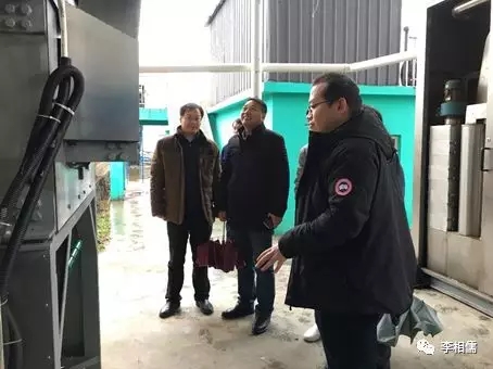 圖為孔朝陽副處長(左二)一行參觀廚余垃圾破袋除雜純化成套化設備