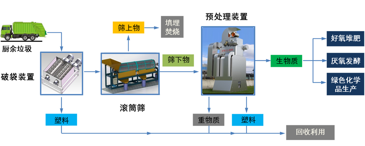 適用于生物質(zhì)垃圾(包括混合垃圾、廚余垃圾、餐廚垃圾、農(nóng)貿(mào)垃圾)厭氧產(chǎn)沼能源化利用、堆肥資源化利用、綠色化學(xué)品生產(chǎn)前端純化預(yù)處理,以及填埋場礦化垃圾資源化利用。